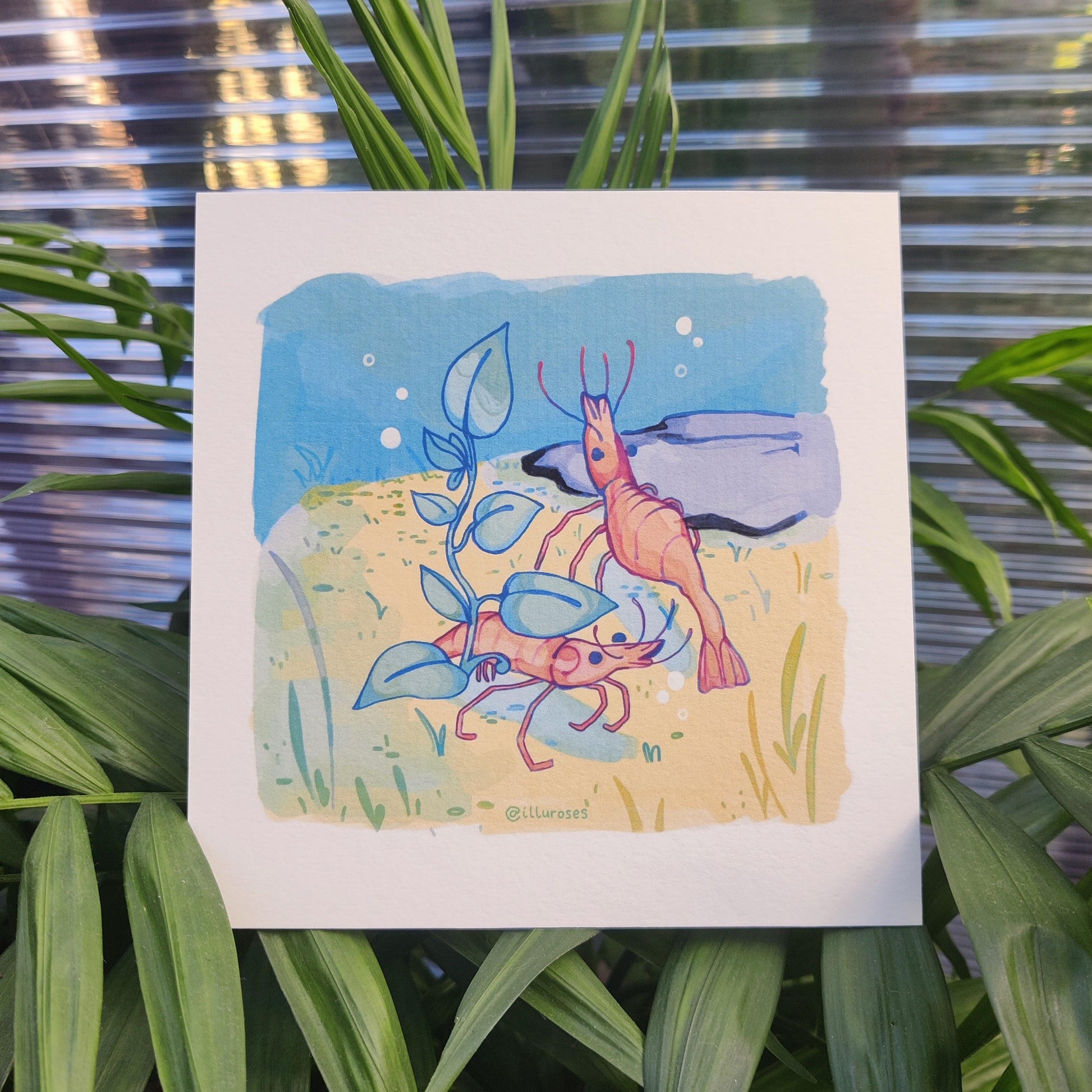 🦐Details: Perfect to give to someone as a gift and would look great on your wall :) Due to differences in lighting, colours may differ slightly from screen to screen. Printed on high quality 300gsm Matte Card. Design by @illuroses. 🦐Feel free to contact me about any questions you might have!
