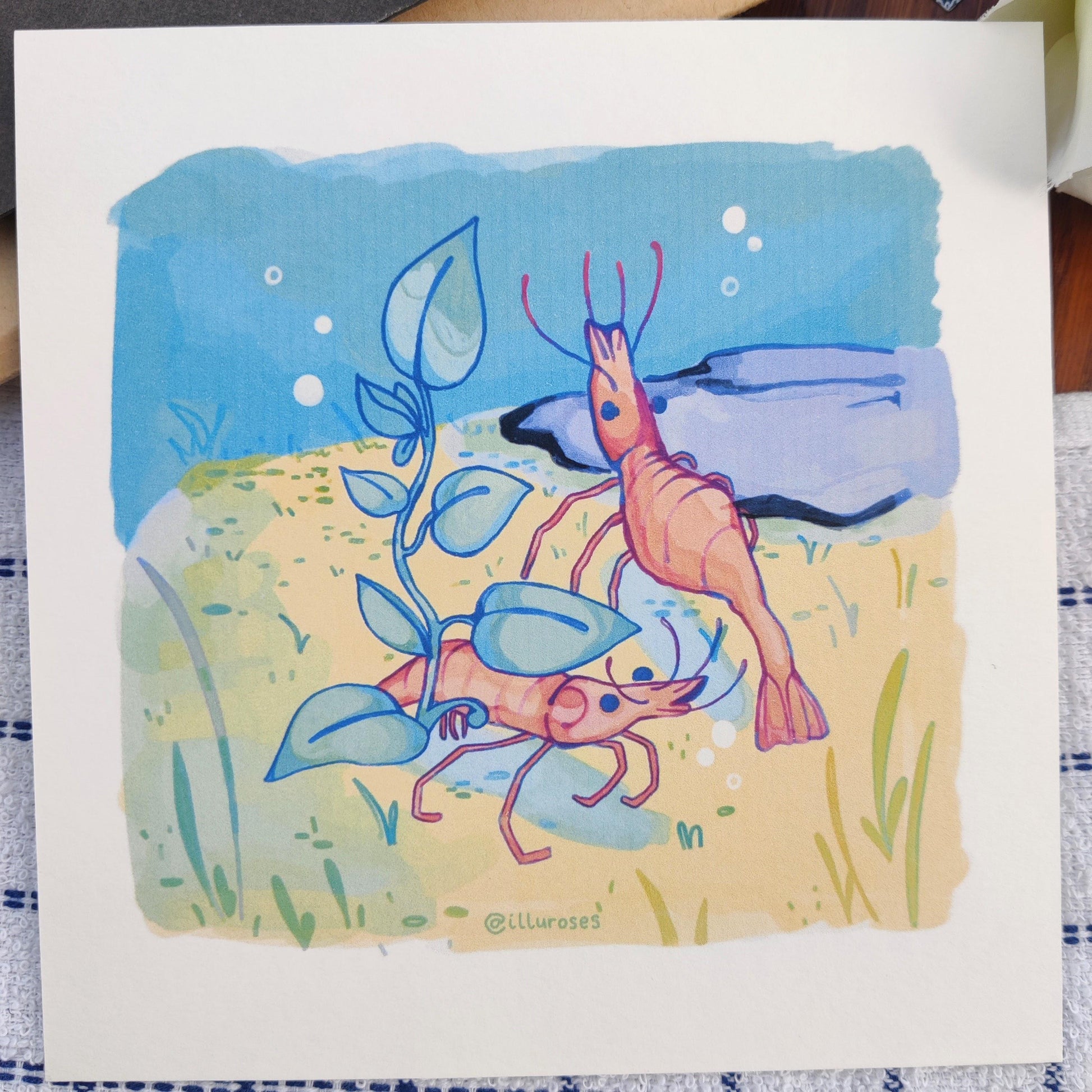 🦐A special original art print of some shrimp, shrimpin and skimpin. Silly skomp. 🦐